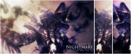 I personally believe that your latest signature (the ME one) is your best work so far. I am a little bias, since the signature is very sharp, and i adore sharp signatures, but the GFX work is perfect. The coloring, the lighting, the C4D work, the textures & effects/the blending of the render, the borders and the text, all are awesome. Its a gorgeous signature overall. I also love the other works, and i would love to comment all of them in great detail, but my brain is dead atm. :kurokan: Anyway, can't wait for your next update. |