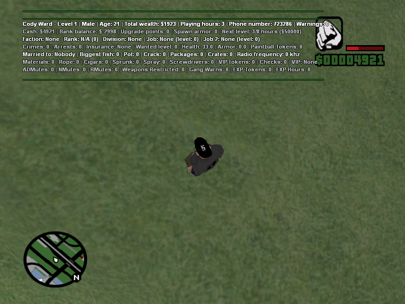 Name: Cody Ward Age: 21 Origin: Los Santos 5 sentences why you would like to join: I would like to join for fun. I would like to be in some type of formation. I would like to help this formation. I can help it get started off. Im also willing to help lead it. Player stats: http://i1226.photobucket.com/albums/ee416/ExtremeReality/sa-mp-017.png ((If a CK were to happen do you agree to it?:)) Yes, only if it was completely RPed.)) ((We all should know your full - name when you join , do you agree to that?)) Yes)) |
