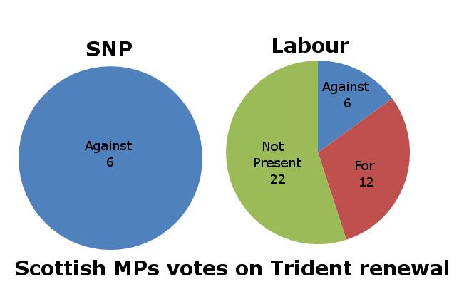 Only 19 Labour MPs voted for the anti Trident motion brought up by the SNP/PC/Greens. 6 of these were Scottish MPs voting against the wishes of the Scottish people http://newsnet.scot/2015/01/trident-renewal-opposed-60-scots-says-snp-poll/ https://pbs.twimg.com/media/B73ftahCEAAL3Xx.jpg