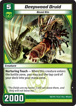 The Duel Masters had even given her another tablet to summon a second creature, this time a Nature Civilisation one. Though he was bigger and stronger than Kenina, Kimiko found that battling with Deepwood Druid wasn't nearly as... natural as duelling with Kenina, although it did have the advantage of not being intensely afraid of water.